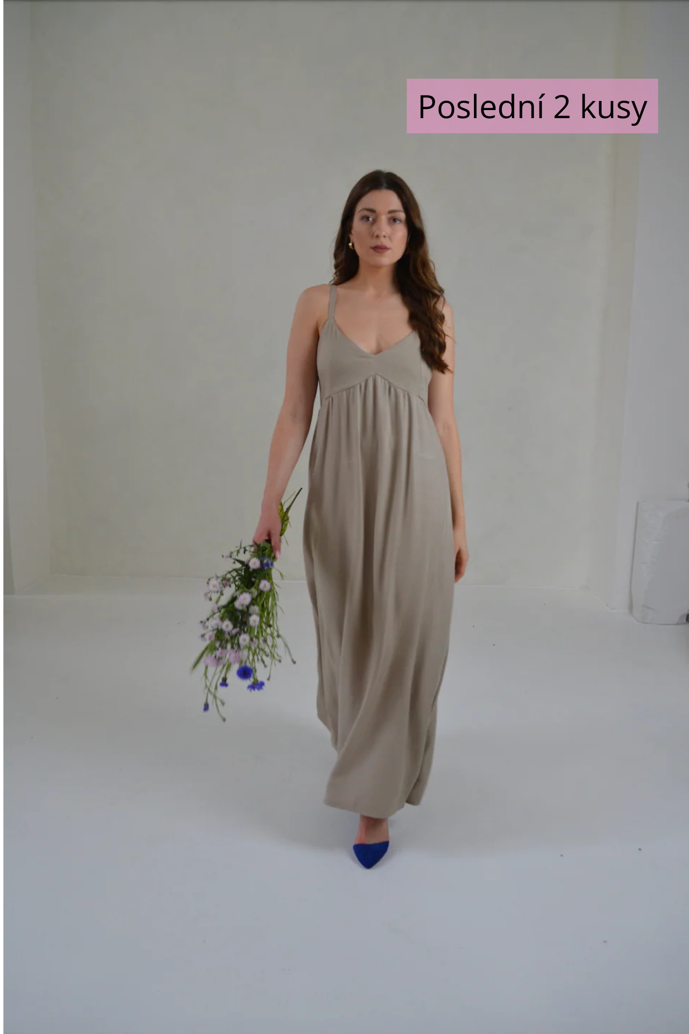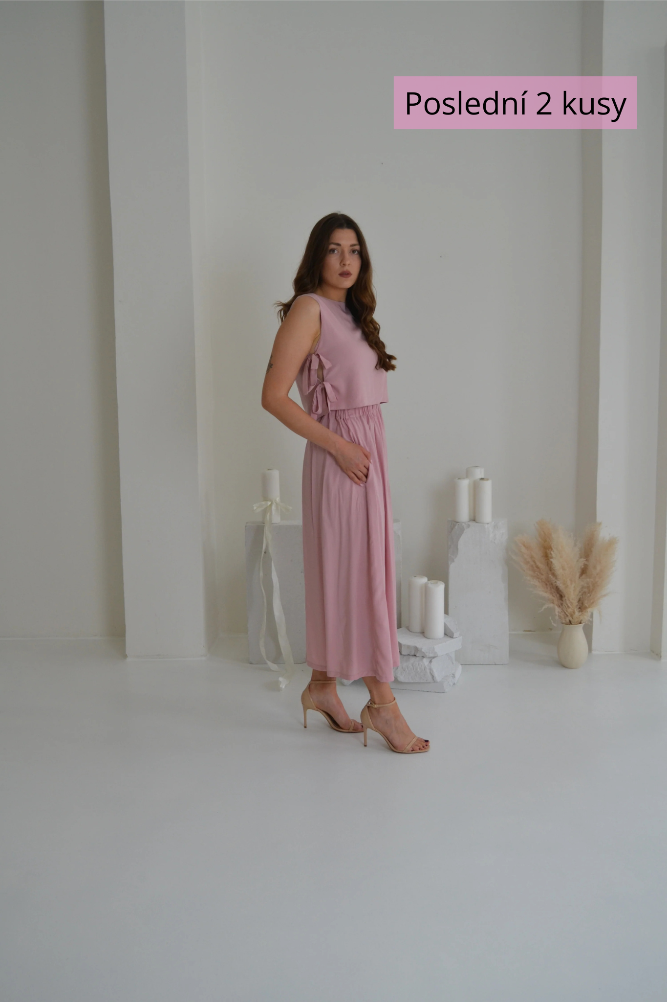 Dlouhé pudrové šaty s příměsí hedvábí